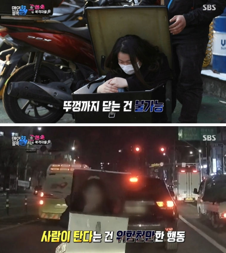 오토바이 배달통안에 든 여자