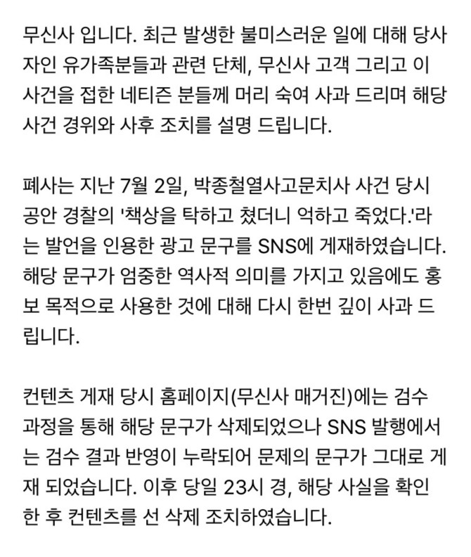 사과문이 아니고