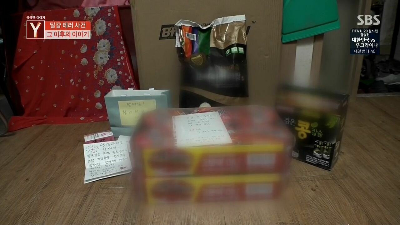 3. 방송사에서 이 할머니에게 자초지종을 묻자 할머니는 서러움에 눈물을 흘리며 오랫동안 괴한으로부터 달걀 테러를 받아왔다는 대답이 돌아옴. 할머니는 이 괴한의 정체를 파헤치기 위해 폐지를 주워 모은 돈으로 CCTV까지 설치하며 증거를 모음.