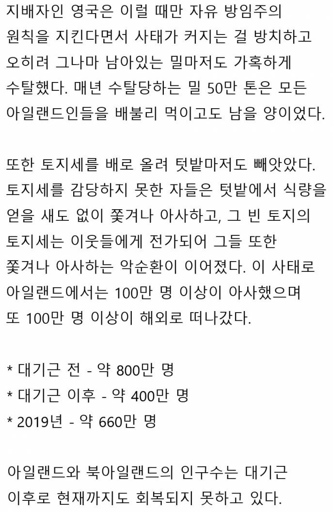 아일랜드 대기근 당시 영국이 저지른짓