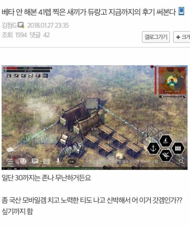 현 렙 42 친구들이랑 부족만들고 친구들이 재료모아오면 무기만들어주면서 하니까 아직까지 할만함 ㅋㅋ