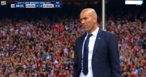 닐신의 수비력을 보고 믿을수가 없는 지단의 반응